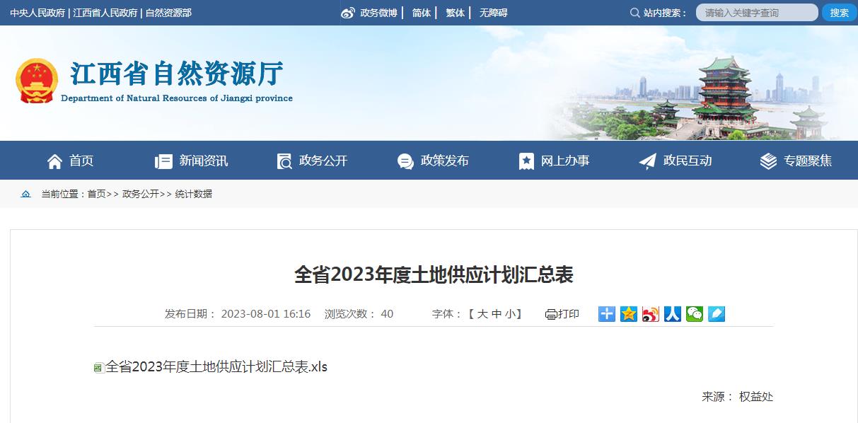 江西省自然資源廳官網發布了