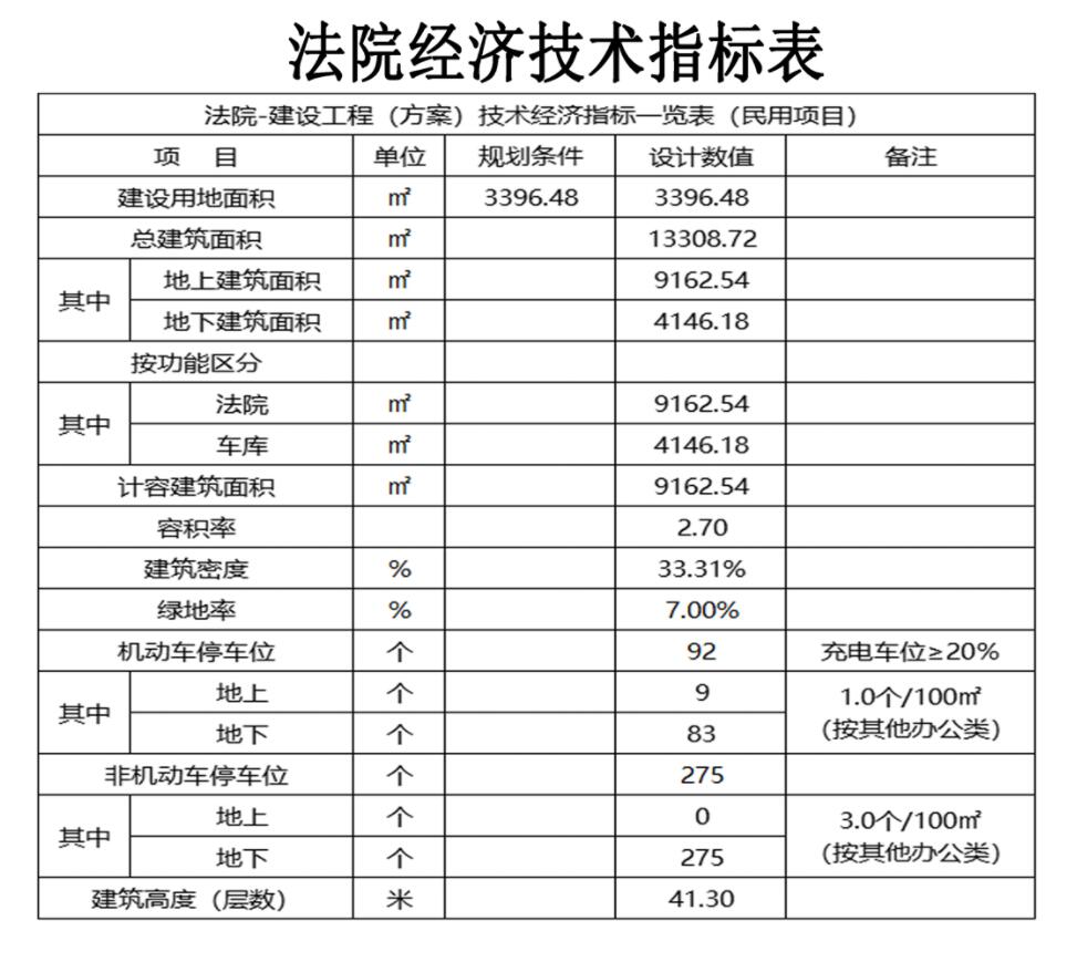 法務業務用房工程概況:規劃用地面積3396.48㎡,擬建筑面積13308.72㎡,容積率2.7。